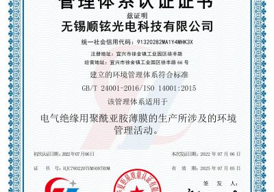 無錫順鉉光電環(huán)境管理體系認證證書(E)