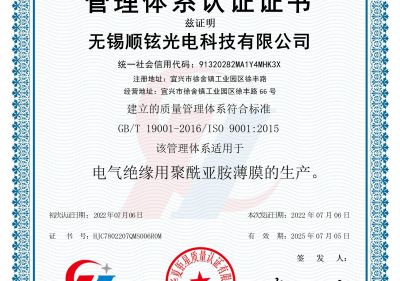 無錫順鉉光電質(zhì)量管理體系認證證書(Q)